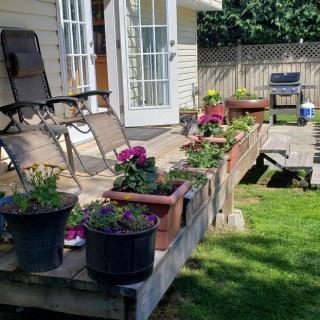 Coffee breaks in the morning are now outside with all the flower planters on the little back deck.